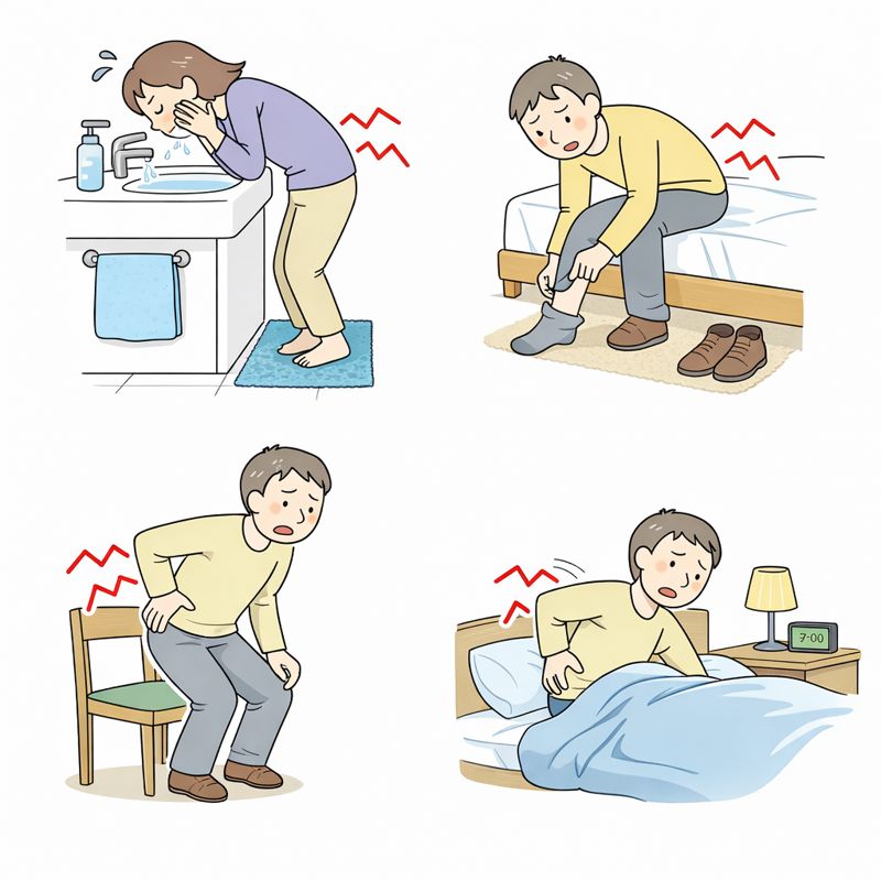 ・朝、布団から起き上がろうとした瞬間に腰に激痛が走った