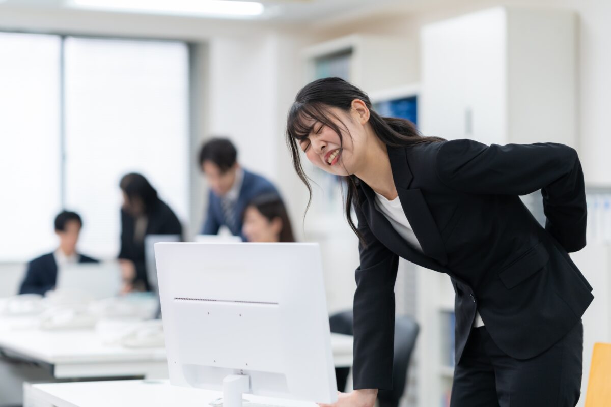 特に座り姿勢が長い方は、腰回りの筋肉が硬くなりやすく、立ち上がりや前屈動作で痛みが出やすい傾向があります。