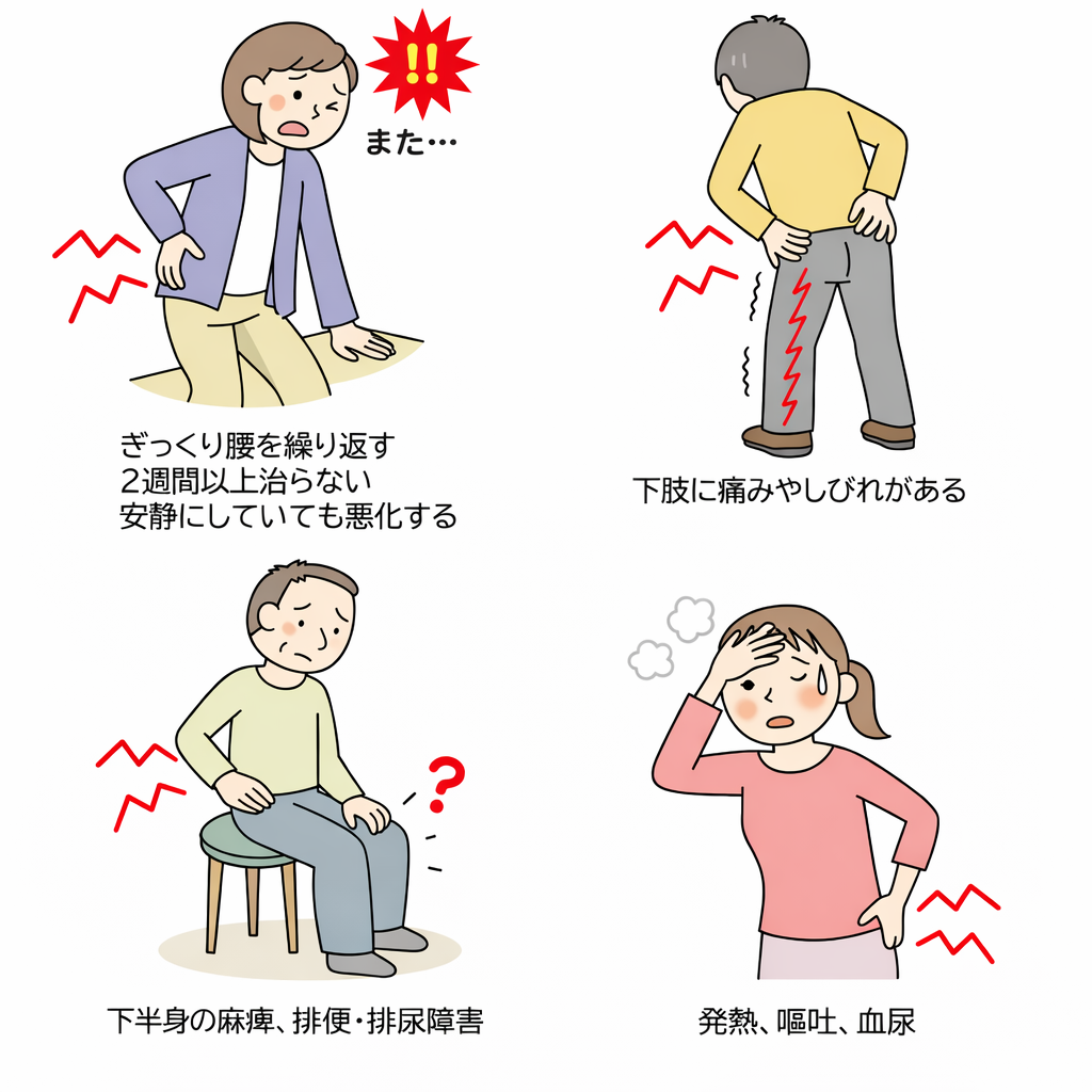姿勢、筋力、生活習慣を見直さなければ、再発のリスクは残ります。